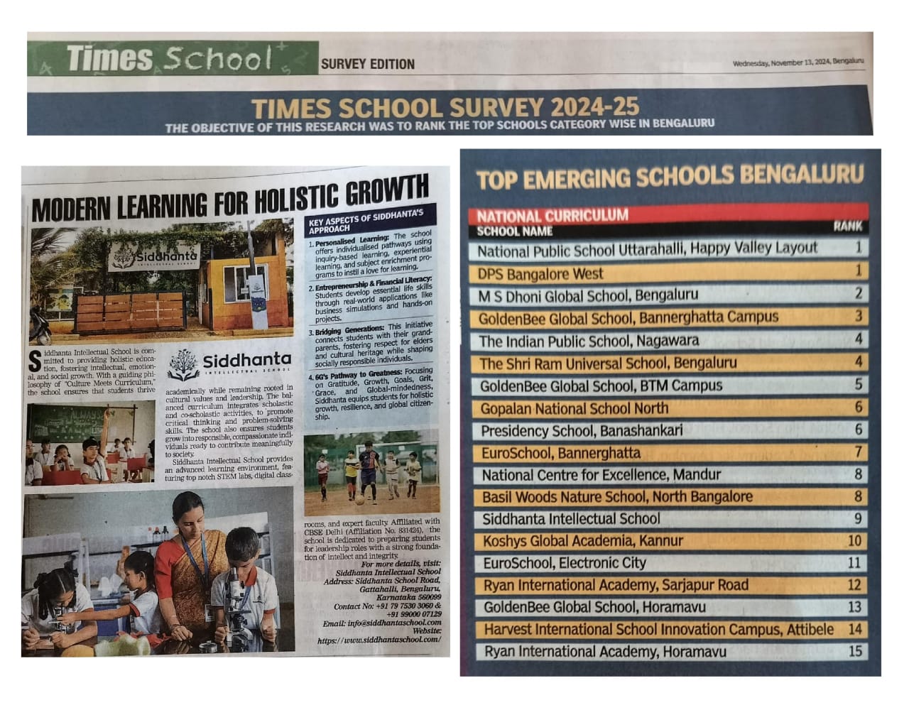Siddhanta Intellectual School is part of a broader educational network that includes other esteemed institutions in Bengaluru. These schools share our commitment to quality education and holistic development. They are: